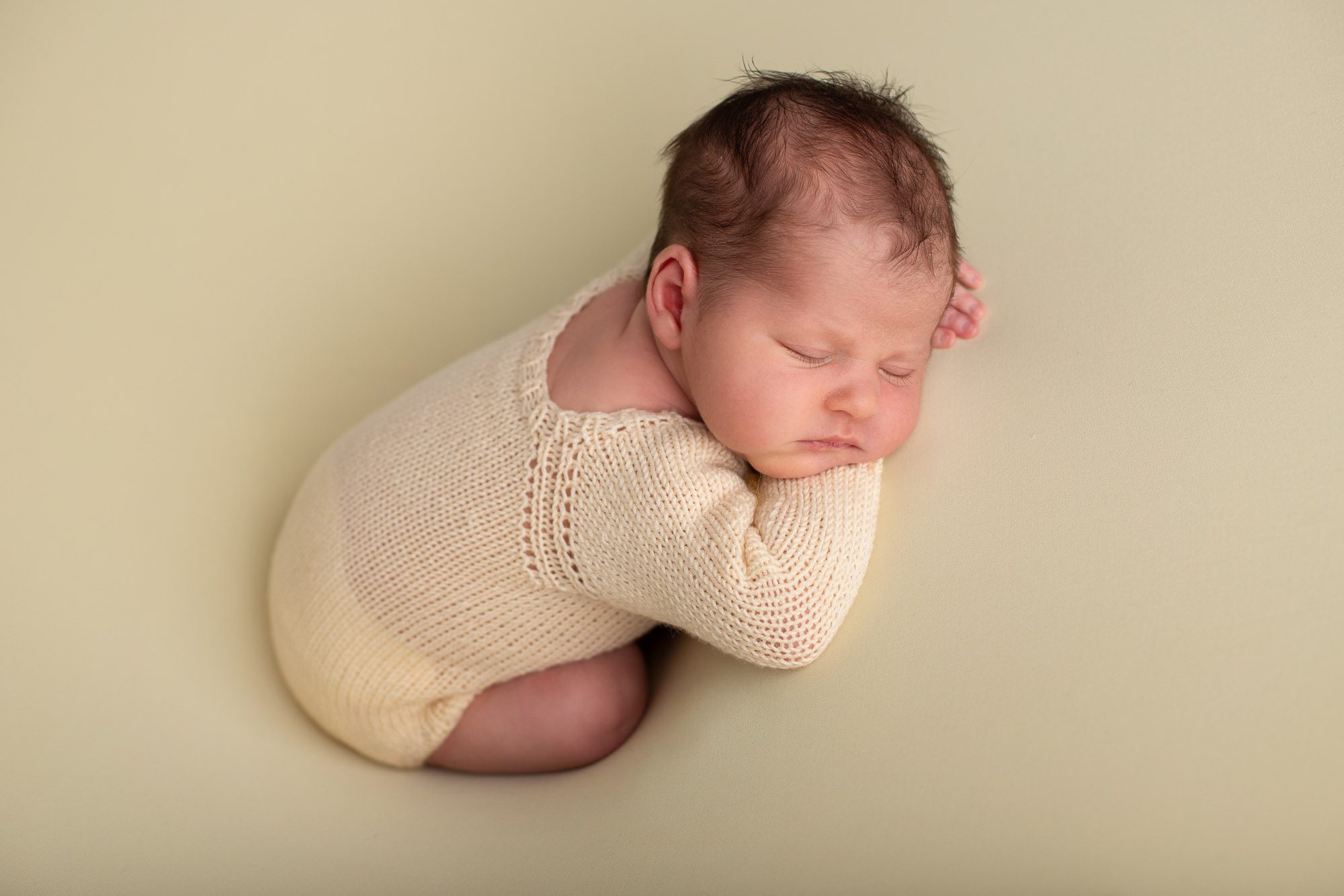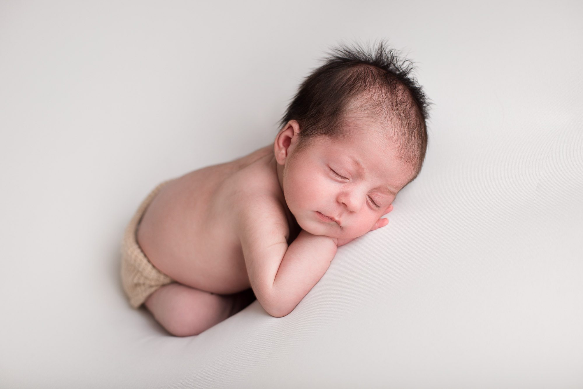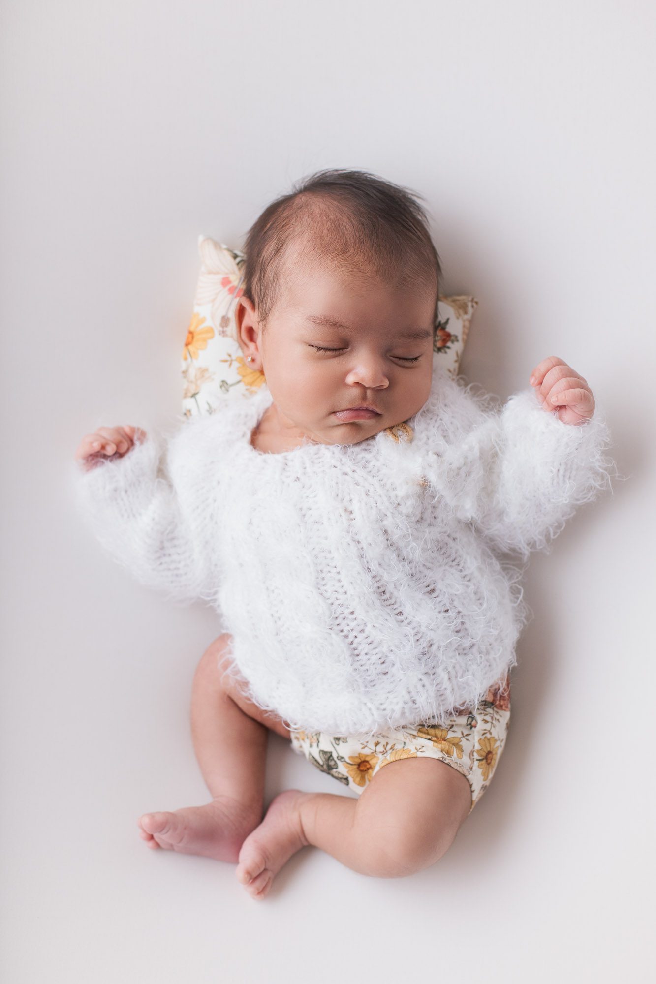 Lo ideal es hacer la sesión dentro de los primeros 14 días, pero se puede realizar hasta el mes. Ten en cuenta que, con más días, los bebés pierden la pose fetal, y su sueño es menos profundo. Aunque no es un problema, algunas fotos pueden ser un poco diferentes, como con los ojitos abiertos.